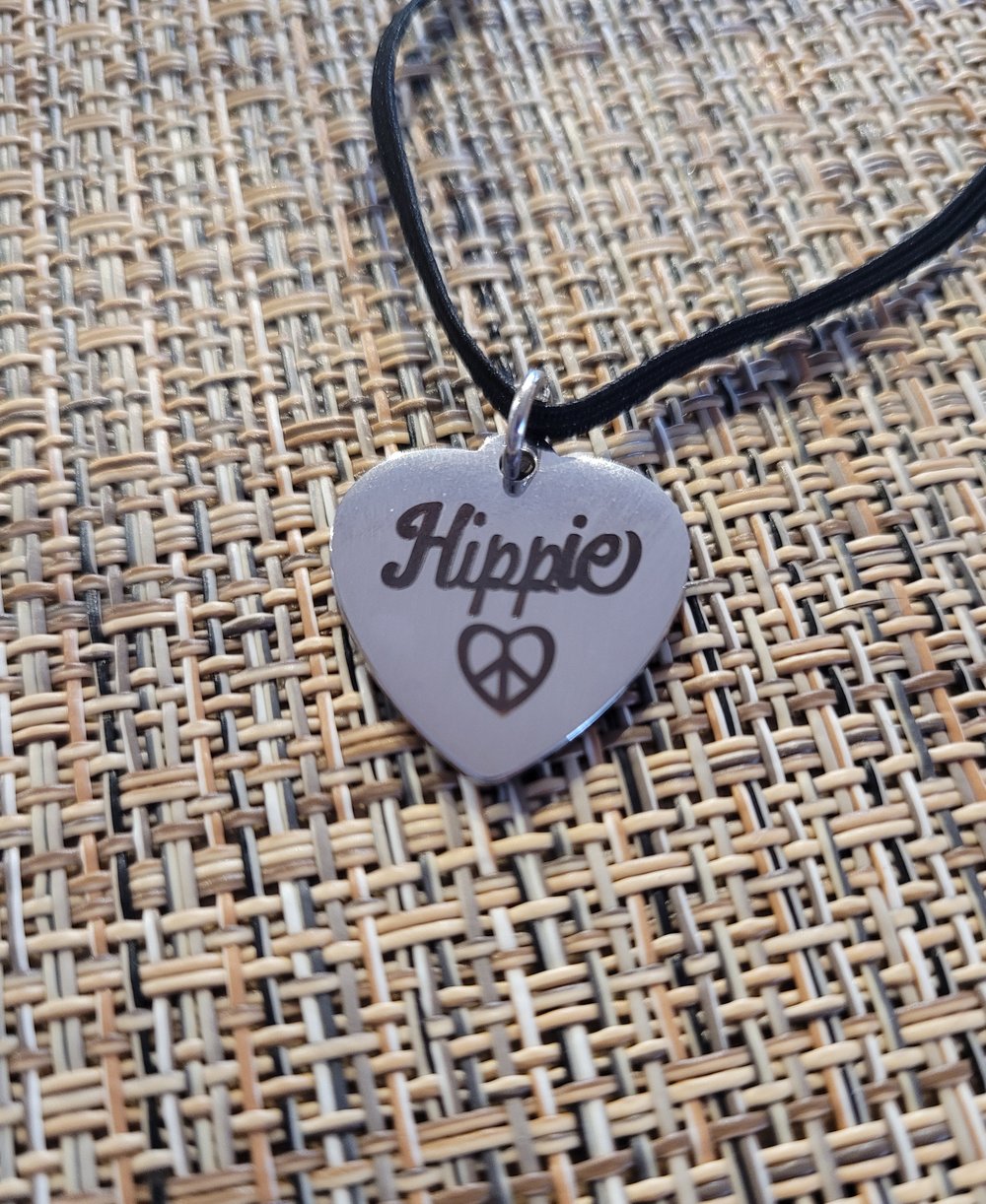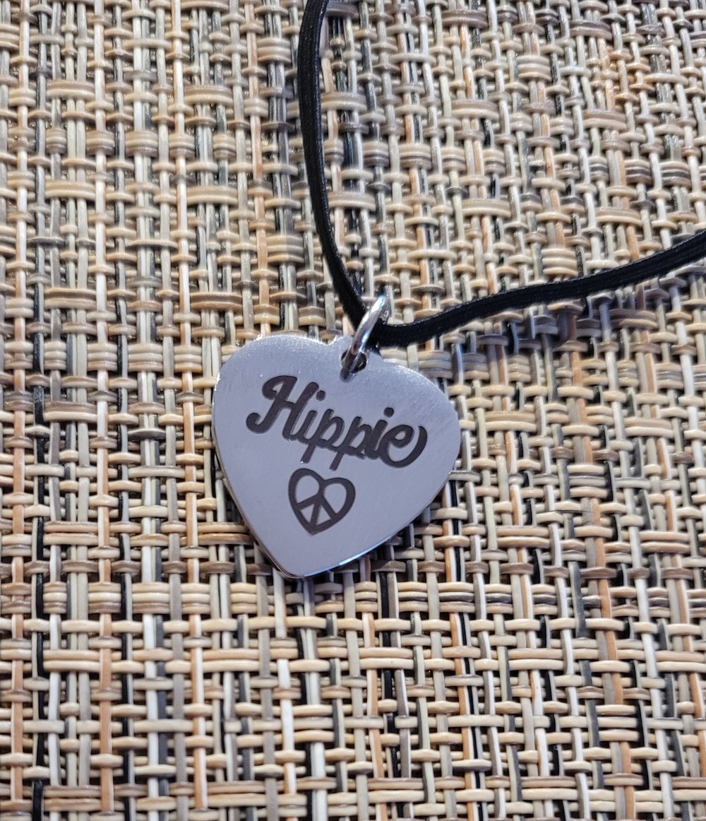 On an 18" flat (faux) suede leather cord with lobster clasp and 2" extension/adjustable chain