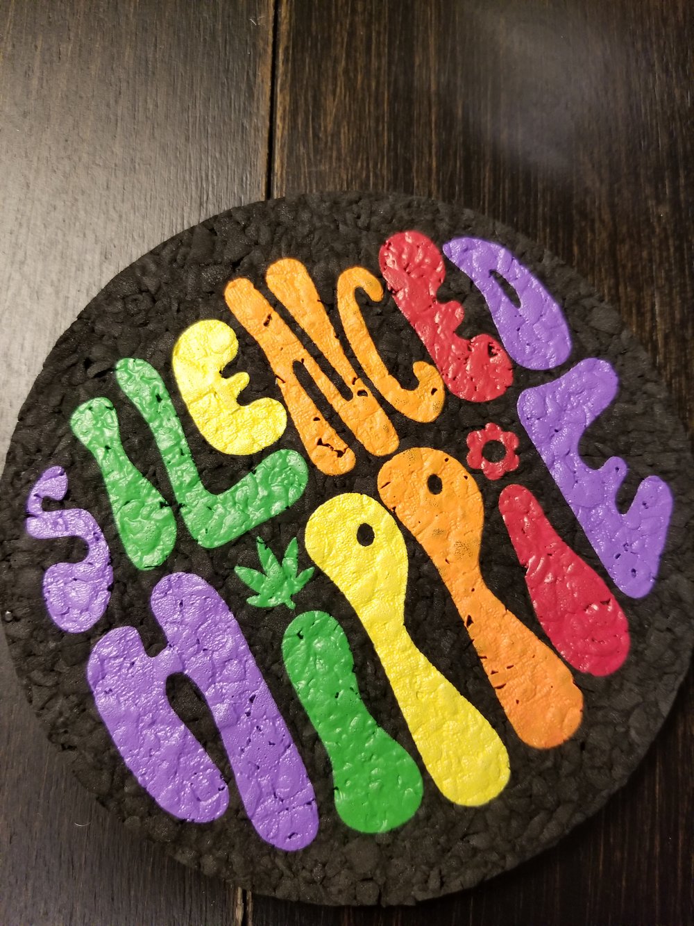 SilencedHippie Mood Mats! These can be used as coasters for your glass pieces to display and keep them safe while you're seshing with friends! You can use them to display just about anything that will fit on the 5" mood mat.
